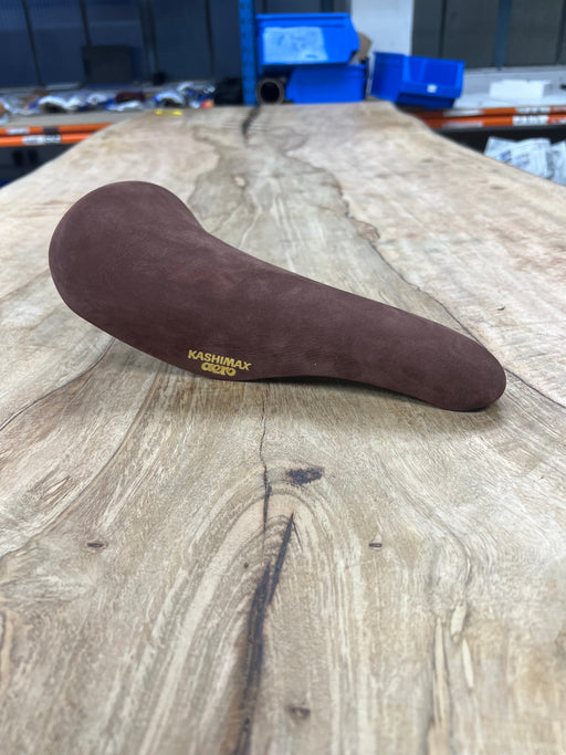 KASHIMAX Saddle AERO AX-4A Padded, Suede Brown, Black Base, CP Rail