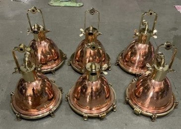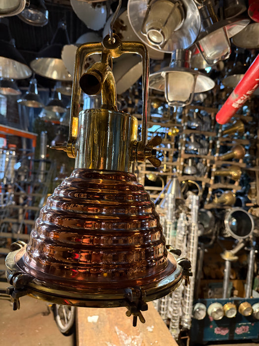 Salvaged Wiska Brass and Copper Deck Pendant light
