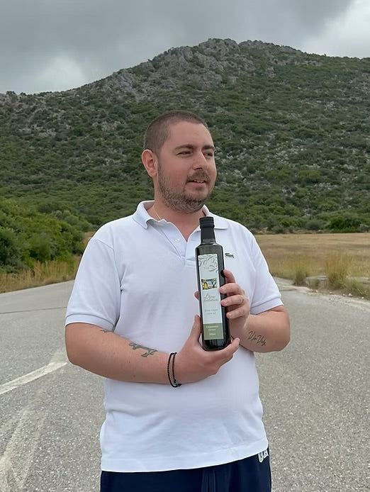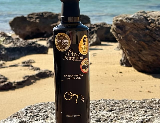 Olive Tentation EVOO made of Koroneiki and Athinoelia Olives grown on the Stivaktas family farm in Neapoli on the Peloponnesse.
