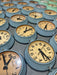 These were originally slave clocks and were all connected to the the master clock in the captain’s cabin so that he could change the time of every clock on board as the boat entered a new time zone. We have converted these to run on two reliable AA battery powered silent quartz mechanisms. A small knob on each face will unscrew to open the sides of the clock face to unveil this.