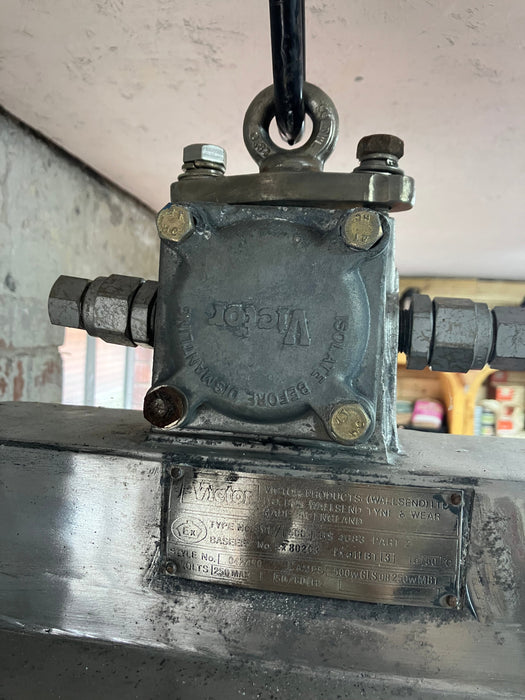 Experience superior durability and safety with the Explosion Proof Light by Victor, made in the UK in the 1950s. Designed for heavy duty use, this light is built to withstand explosive environments, providing reliability and peace of mind.
